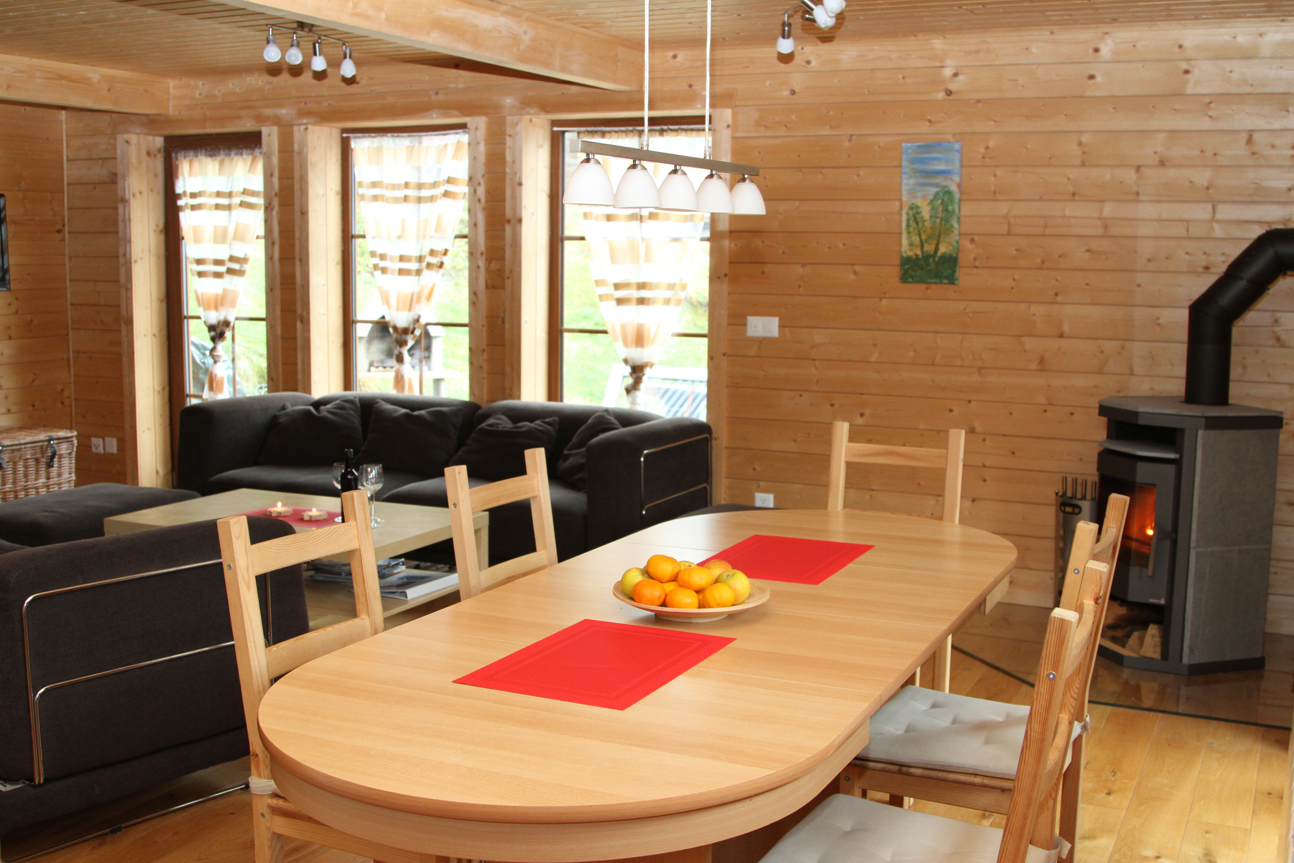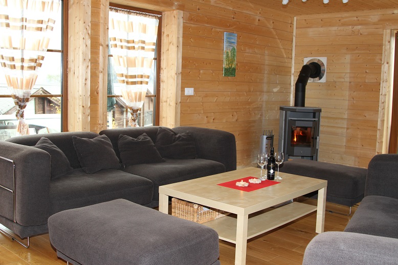 Das über 30 qm große Wohnzimmer hat einen 50 Zoll HD-Fernseher mit Sat (Astra 1A) und DVD-Spieler. Eine Musikanlage mit Radio, CD und IPod-Anschluss sind ebenso vorhanden wie ein Kaminofen für den gemütlichen Teil des Abends.