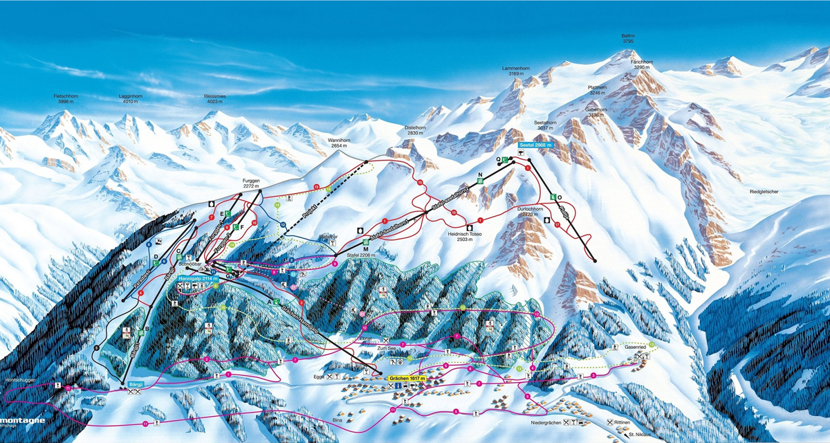 Das Skigebiet Grächen ist gleichermaßen ideal für Anfänger und Fortgeschrittene. Wartezeiten an den Liften sind hier unbekannt. Für die Kinder gibt es spezielle Einrichtungen, Skikurse und Skirennen. Doch die beiden schwarzen Pisten sollten sogar von den Experten ernstgenommen werden!Mountainbike Downhillstrecke Seetalhorn - Grächen geführte MTB-Touren für die ganze Familie